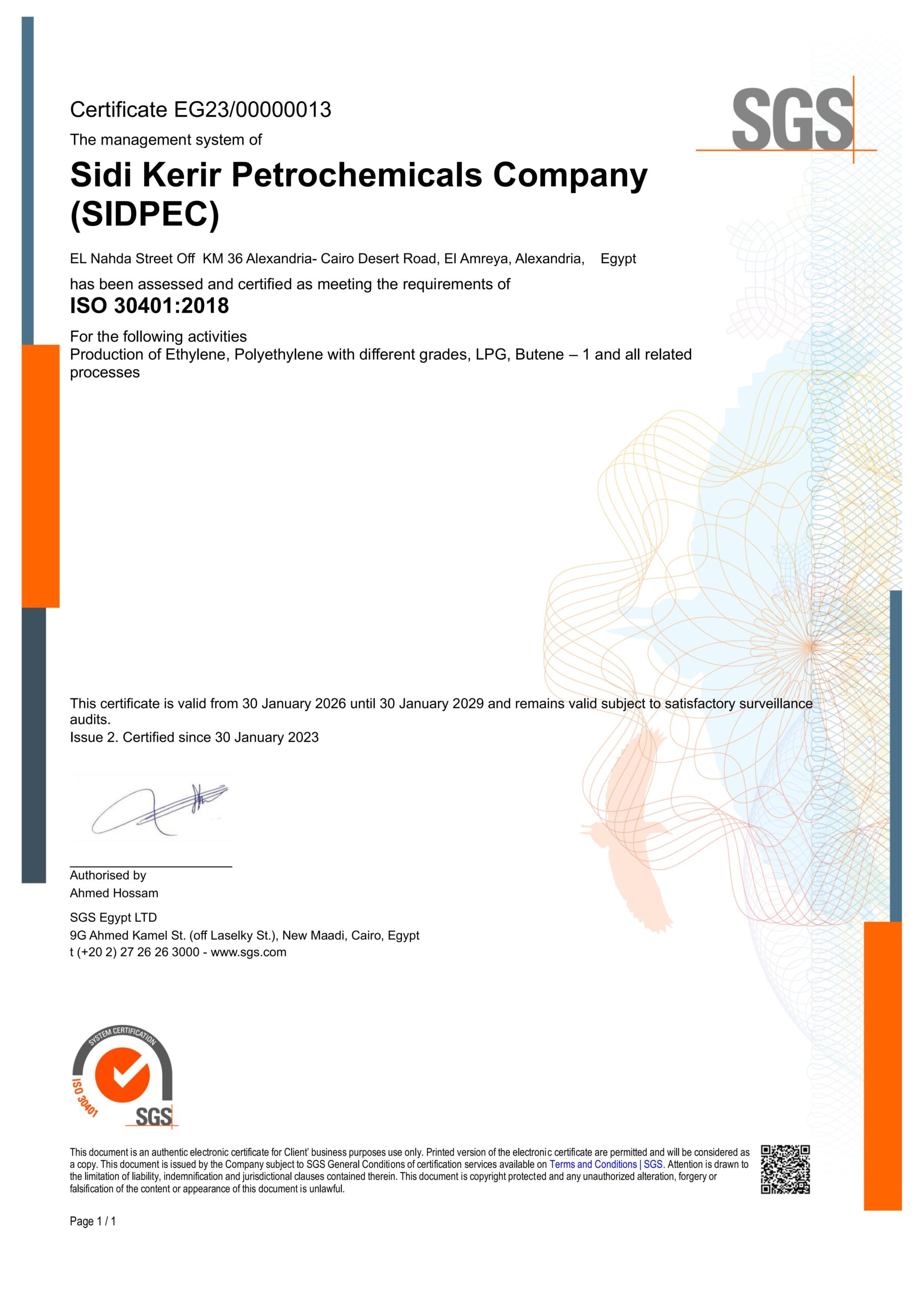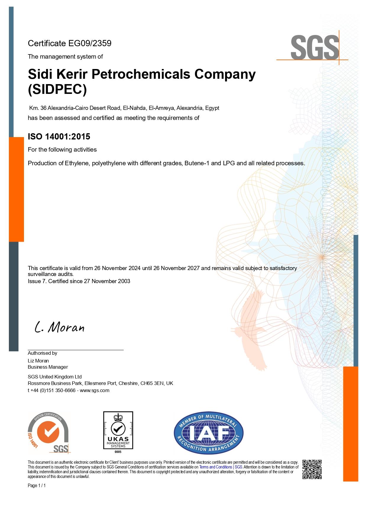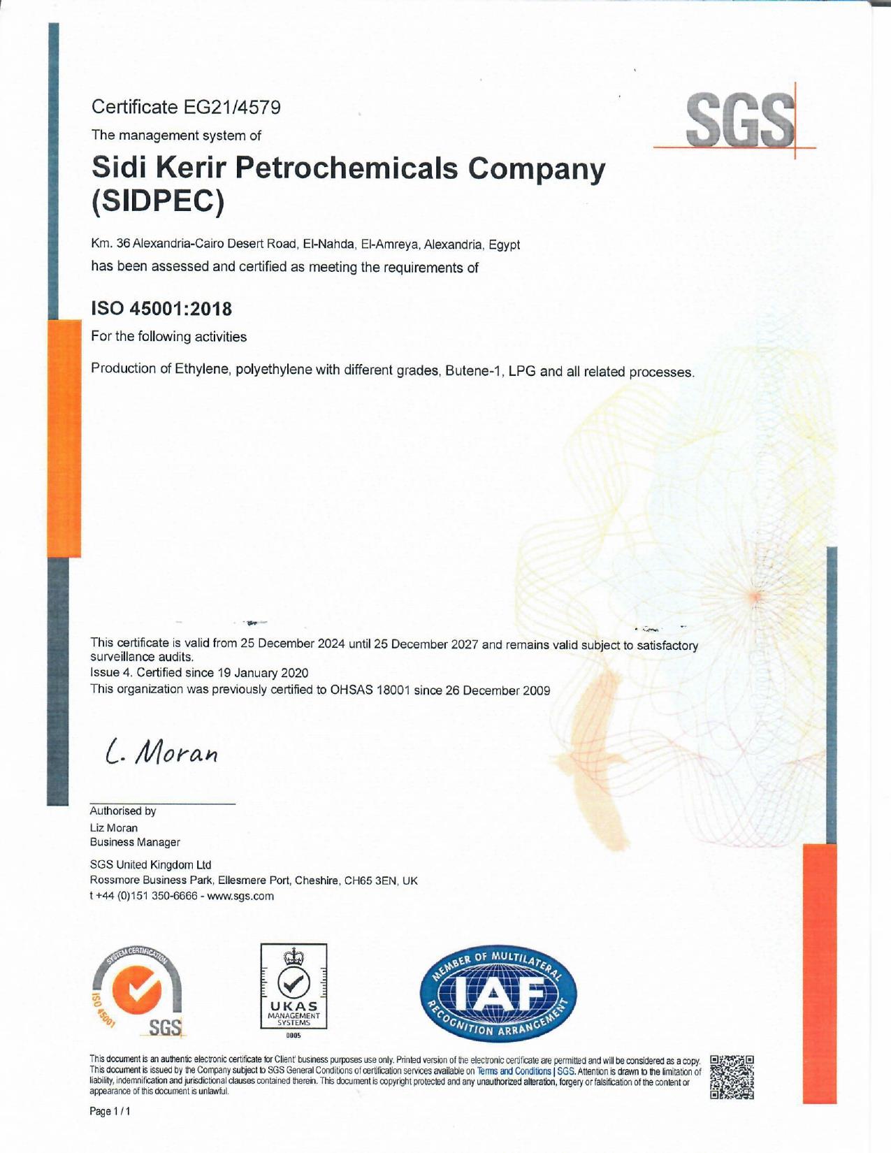SIDPEC is continually improving its HSE management system. This is reflected in The Company HSE policy and the certification for Both ISO 14001 & ISO 45001.