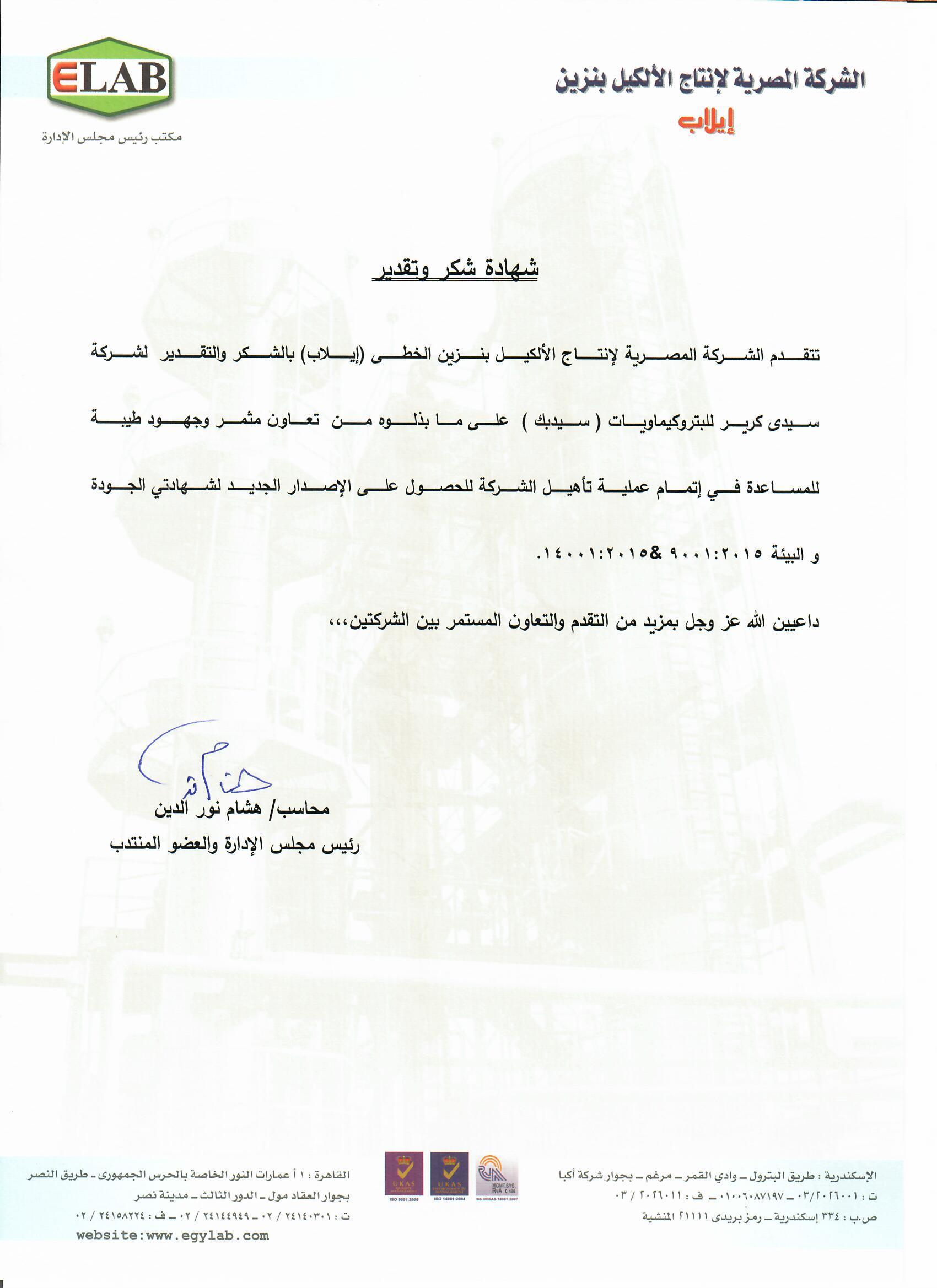 SIDPEC has a special concern to provide its interested parties by any required support to deploy the Knowledge sharing culture especially Petrochemical sector companies such as Peer to Peer network in energy management system and supporting ELAB to upgrade the quality and environment management systems to the new standards ISO 9001:2015 and ISO 14001:2015